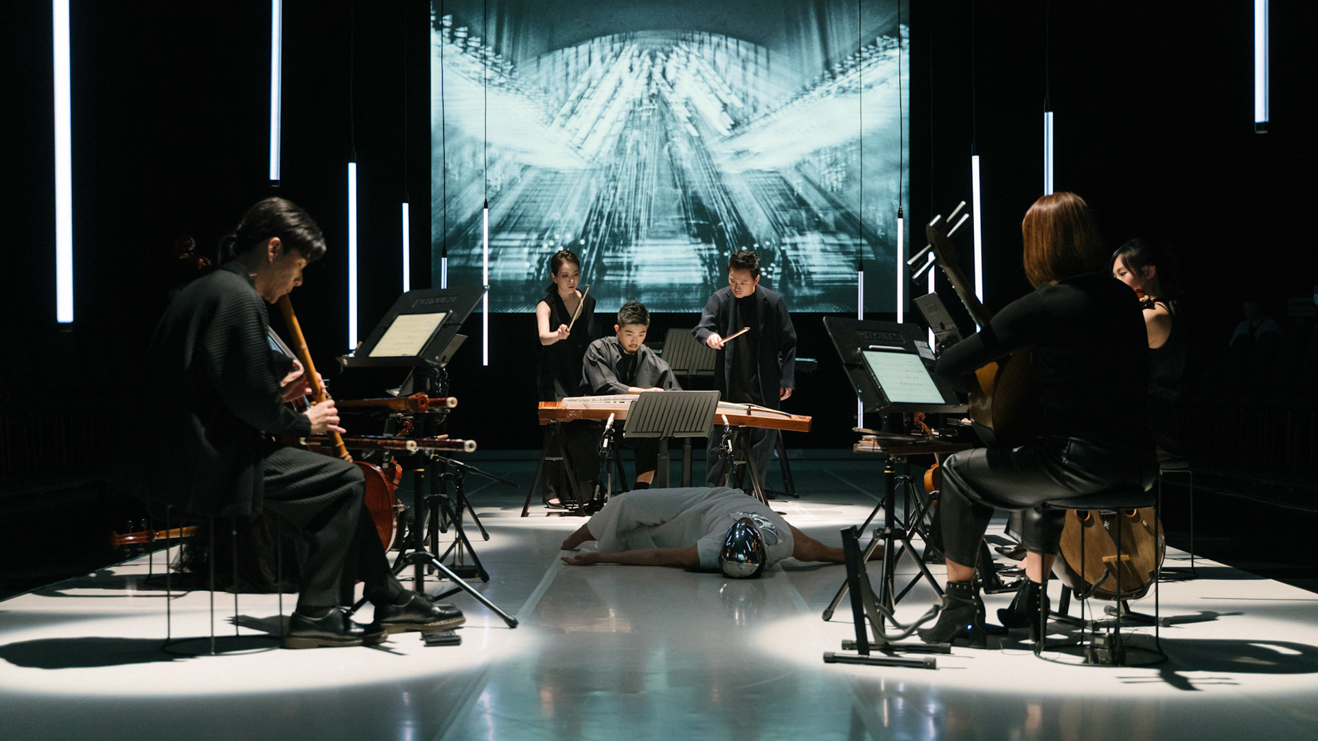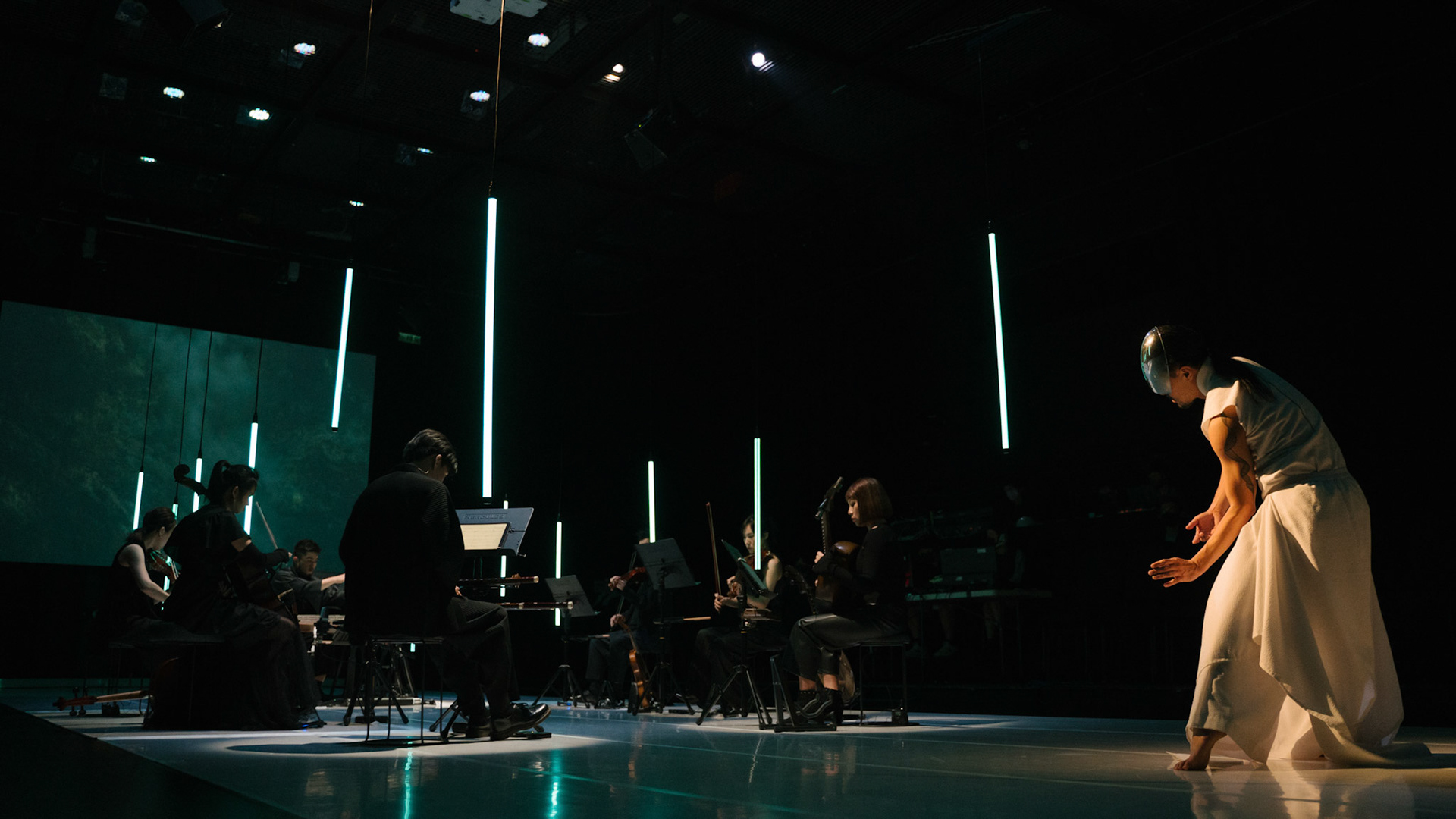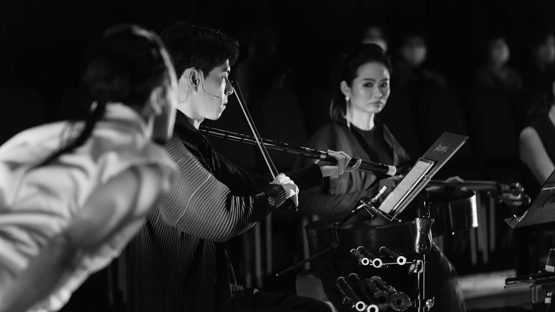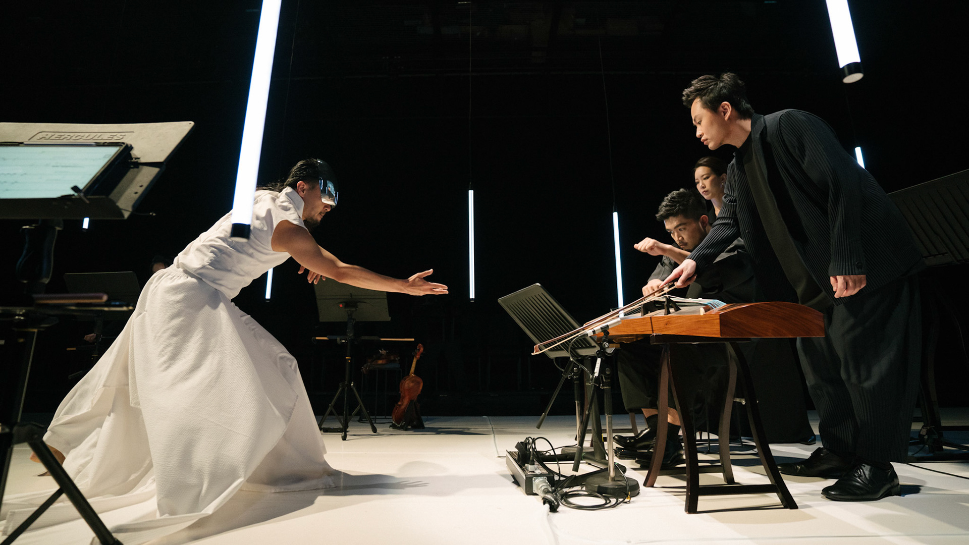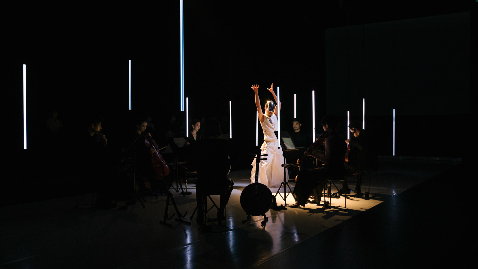 主創團隊|三個人 古箏/郭靖沐、笛簫/任重、阮/潘宜彤 弦樂四重奏|小提琴/張家倫、曾敏青、中提琴/江婉婷、大提琴/張智惠 作曲|呂佾庭《瓶中花》、林煒傑《众・㠭》、黃苓瑄《催化》 合作視覺藝術家|李浩 合作舞蹈藝術家|林春輝(小得) 舞臺設計|謝均安 燈光設計|簡芳瑜 服裝設計|林玉媛 舞台監督|張婷婷 音場設計|溫承翰 影像技術|田子平 製作人|蘇庭睿 執行製作|徐儷慈 劇照攝影|陳宥中