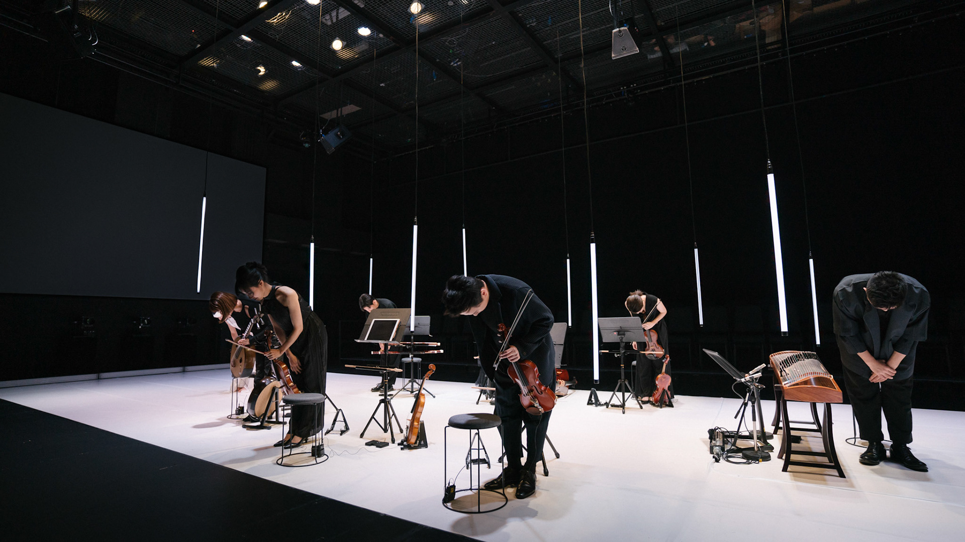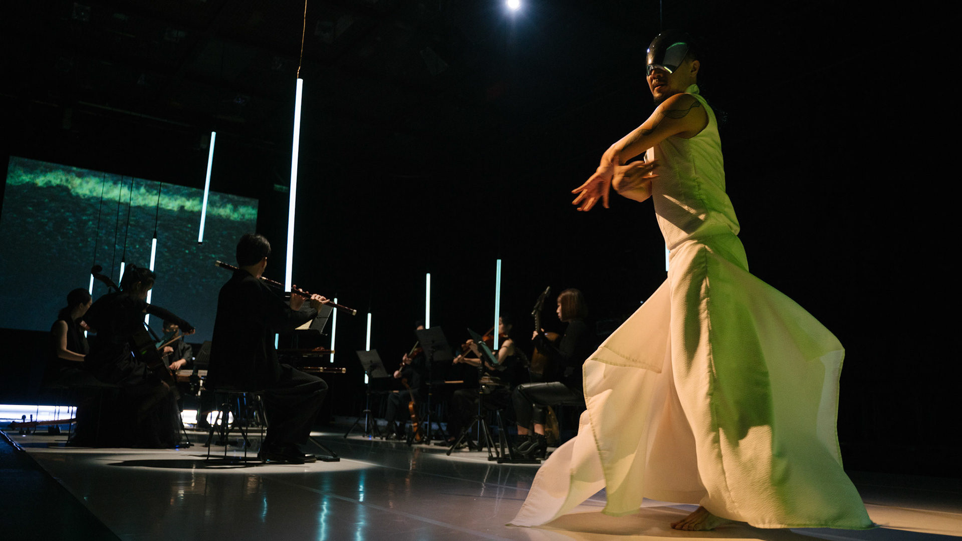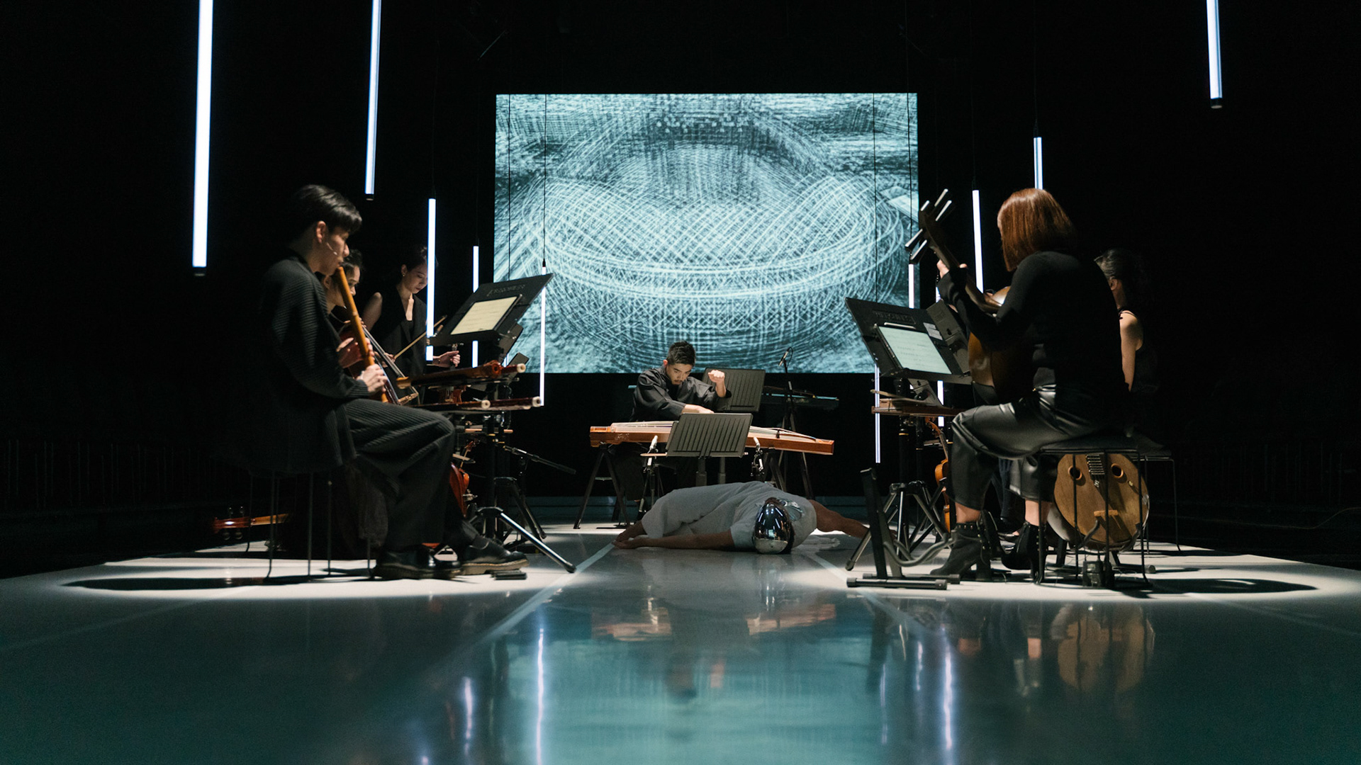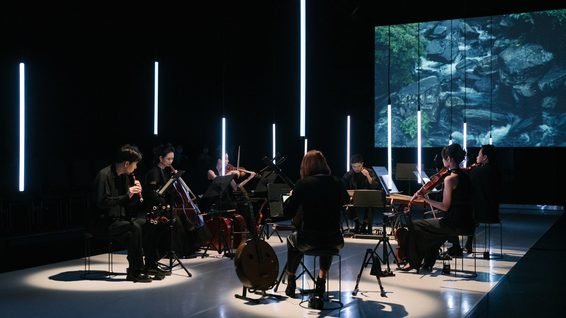 主創團隊|三個人 古箏/郭靖沐、笛簫/任重、阮/潘宜彤 弦樂四重奏|小提琴/張家倫、曾敏青、中提琴/江婉婷、大提琴/張智惠 作曲|呂佾庭《瓶中花》、林煒傑《众・㠭》、黃苓瑄《催化》 合作視覺藝術家|李浩 合作舞蹈藝術家|林春輝(小得) 舞臺設計|謝均安 燈光設計|簡芳瑜 服裝設計|林玉媛 舞台監督|張婷婷 音場設計|溫承翰 影像技術|田子平 製作人|蘇庭睿 執行製作|徐儷慈 劇照攝影|陳宥中