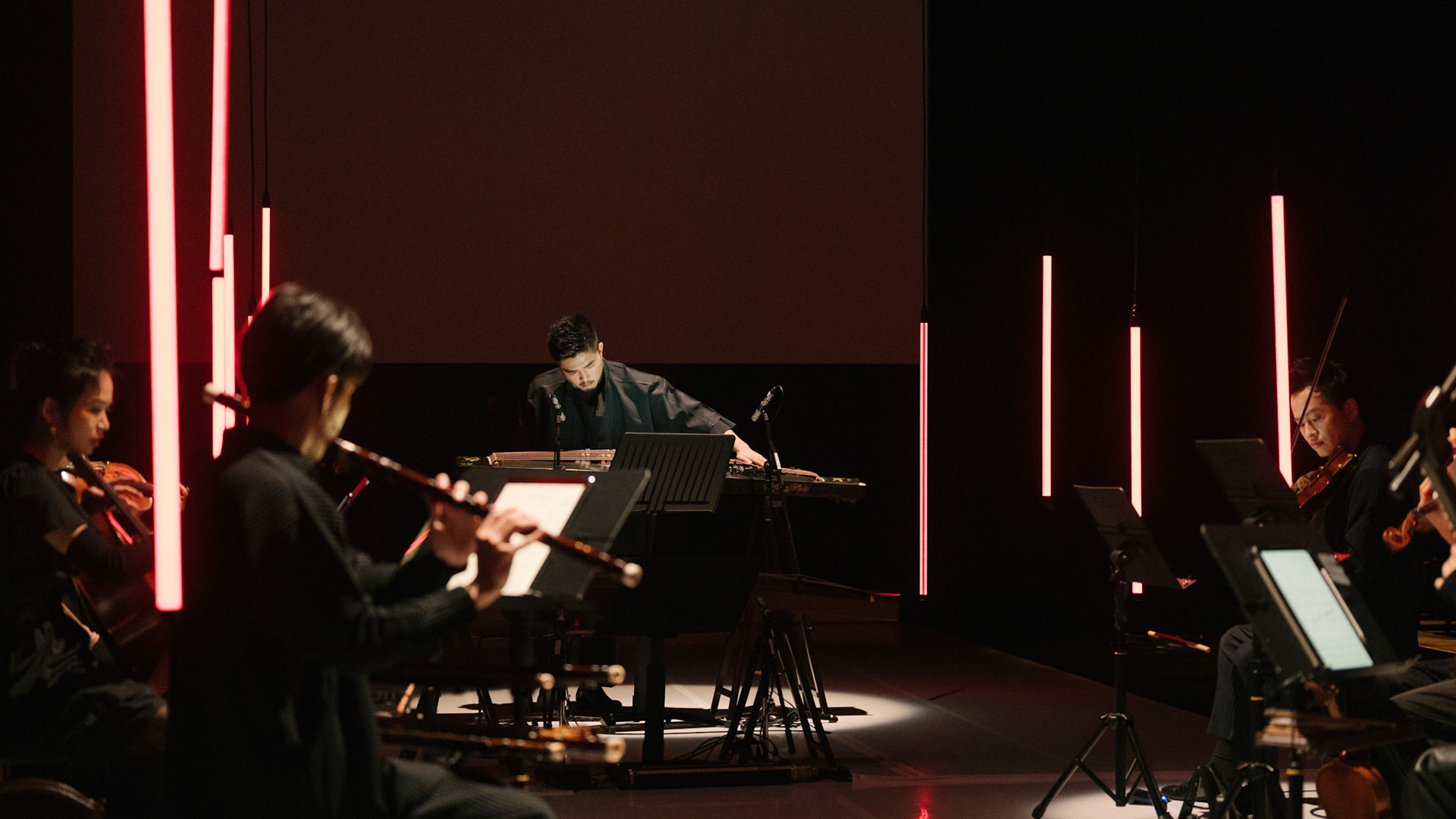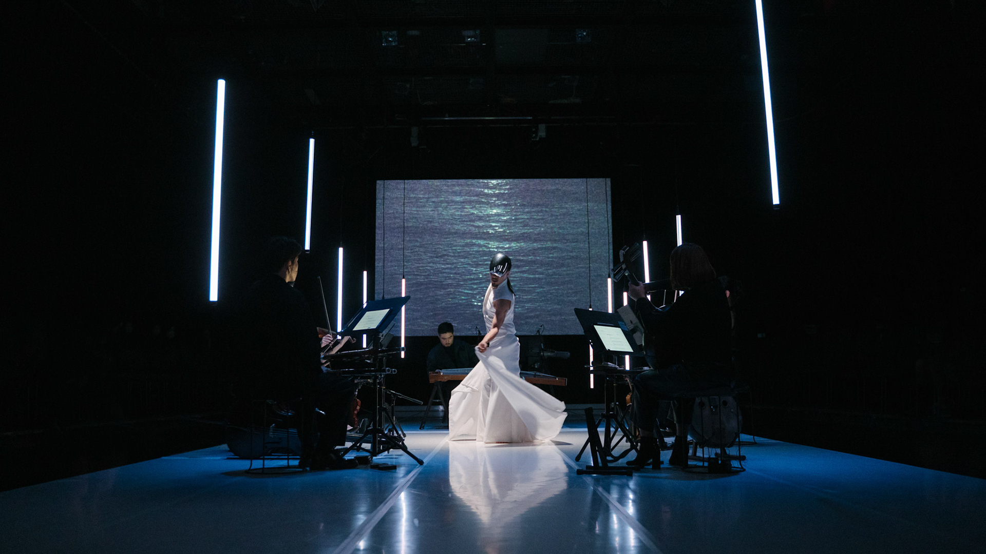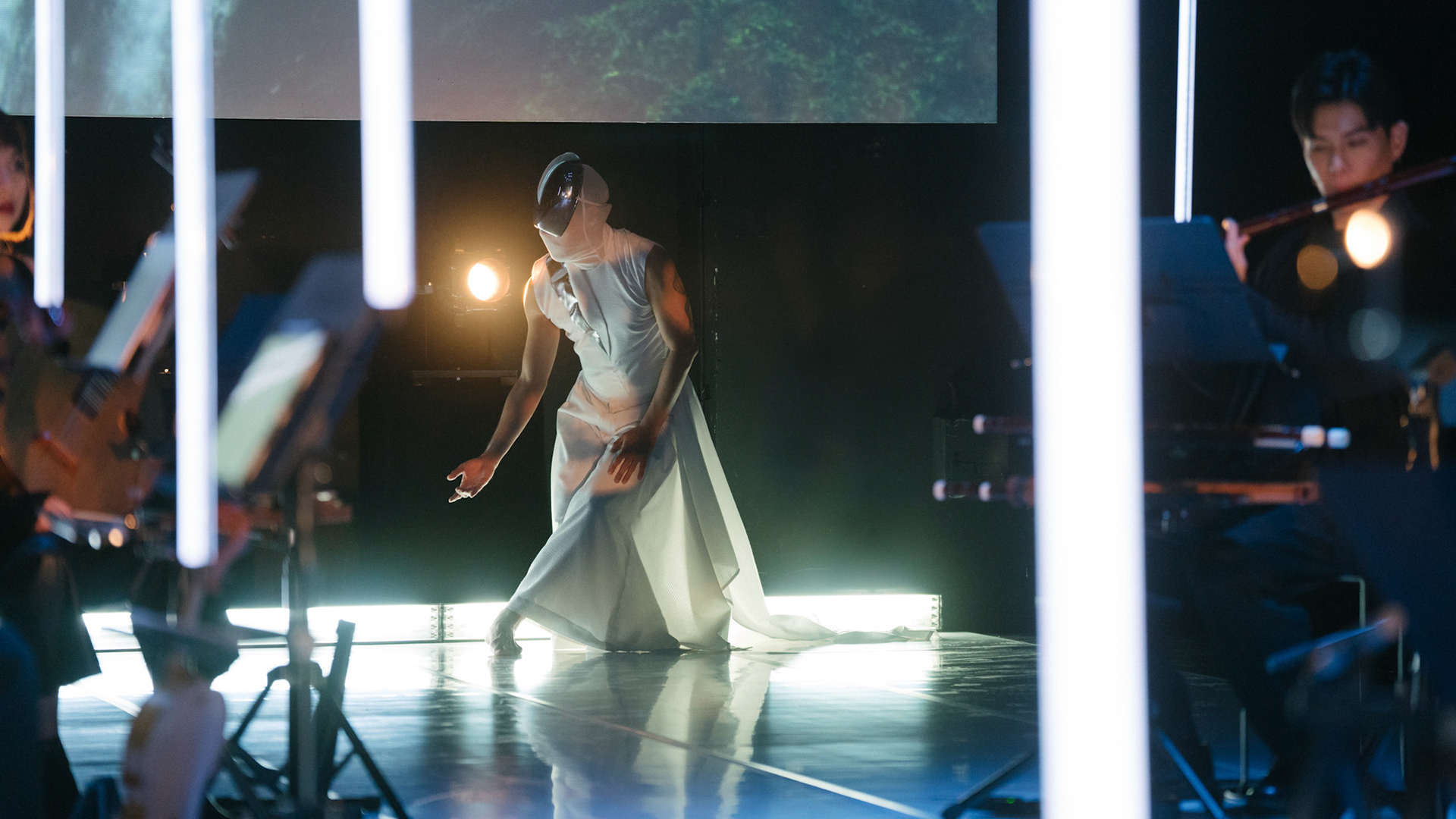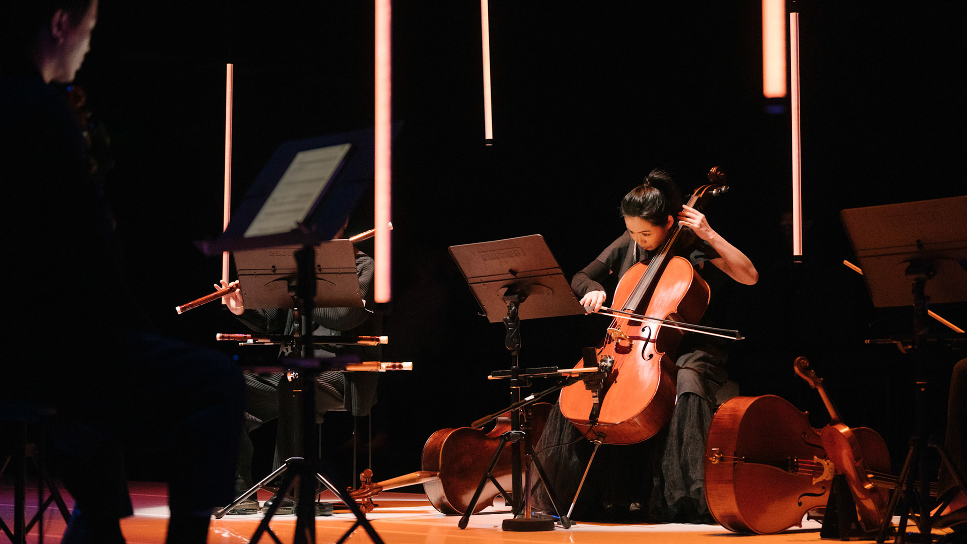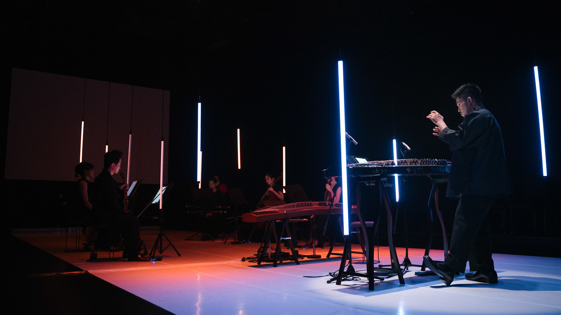 主創團隊|三個人 古箏/郭靖沐、笛簫/任重、阮/潘宜彤 弦樂四重奏|小提琴/張家倫、曾敏青、中提琴/江婉婷、大提琴/張智惠 作曲|呂佾庭《瓶中花》、林煒傑《众・㠭》、黃苓瑄《催化》 合作視覺藝術家|李浩 合作舞蹈藝術家|林春輝(小得) 舞臺設計|謝均安 燈光設計|簡芳瑜 服裝設計|林玉媛 舞台監督|張婷婷 音場設計|溫承翰 影像技術|田子平 製作人|蘇庭睿 執行製作|徐儷慈 劇照攝影|陳宥中