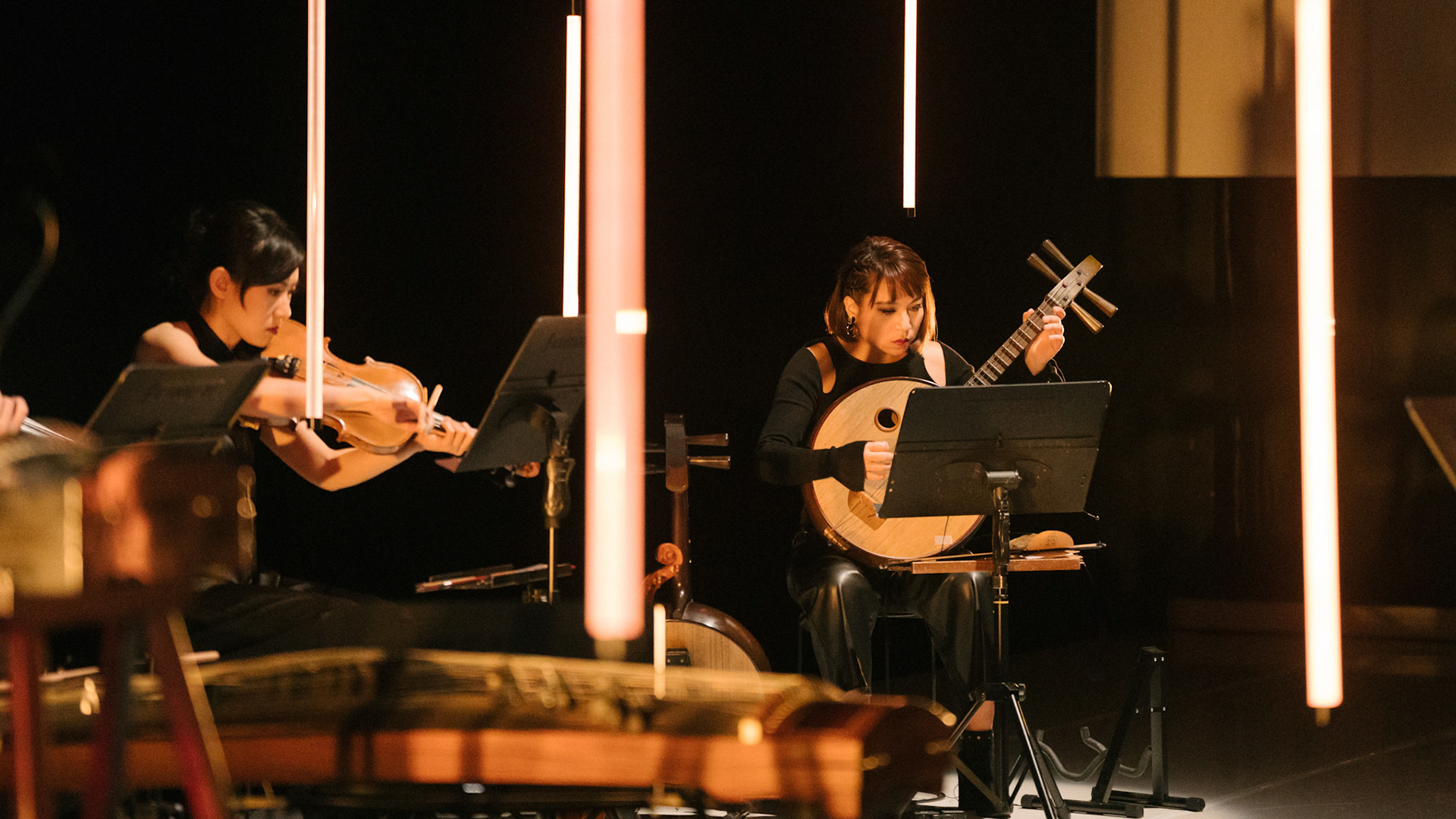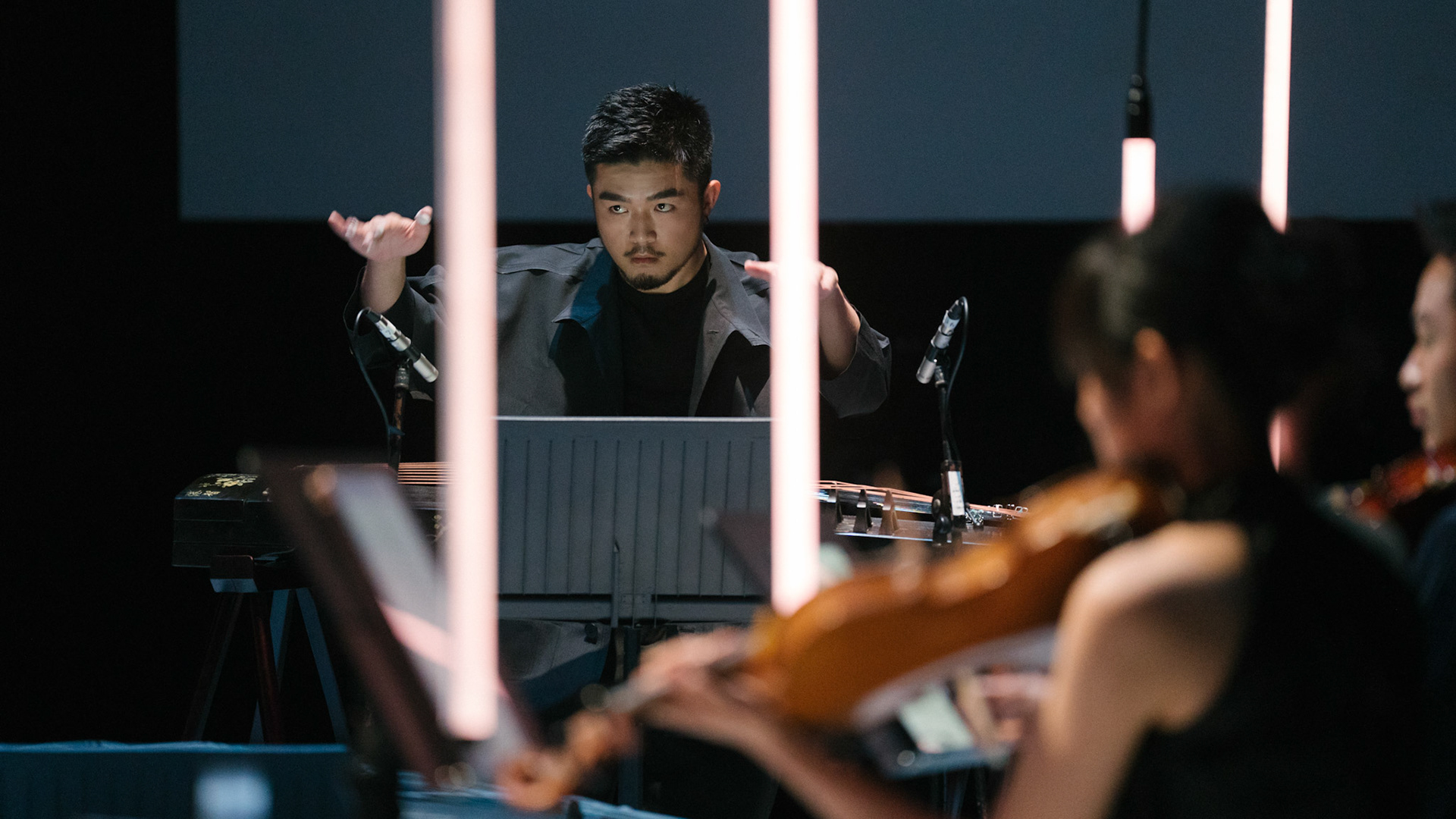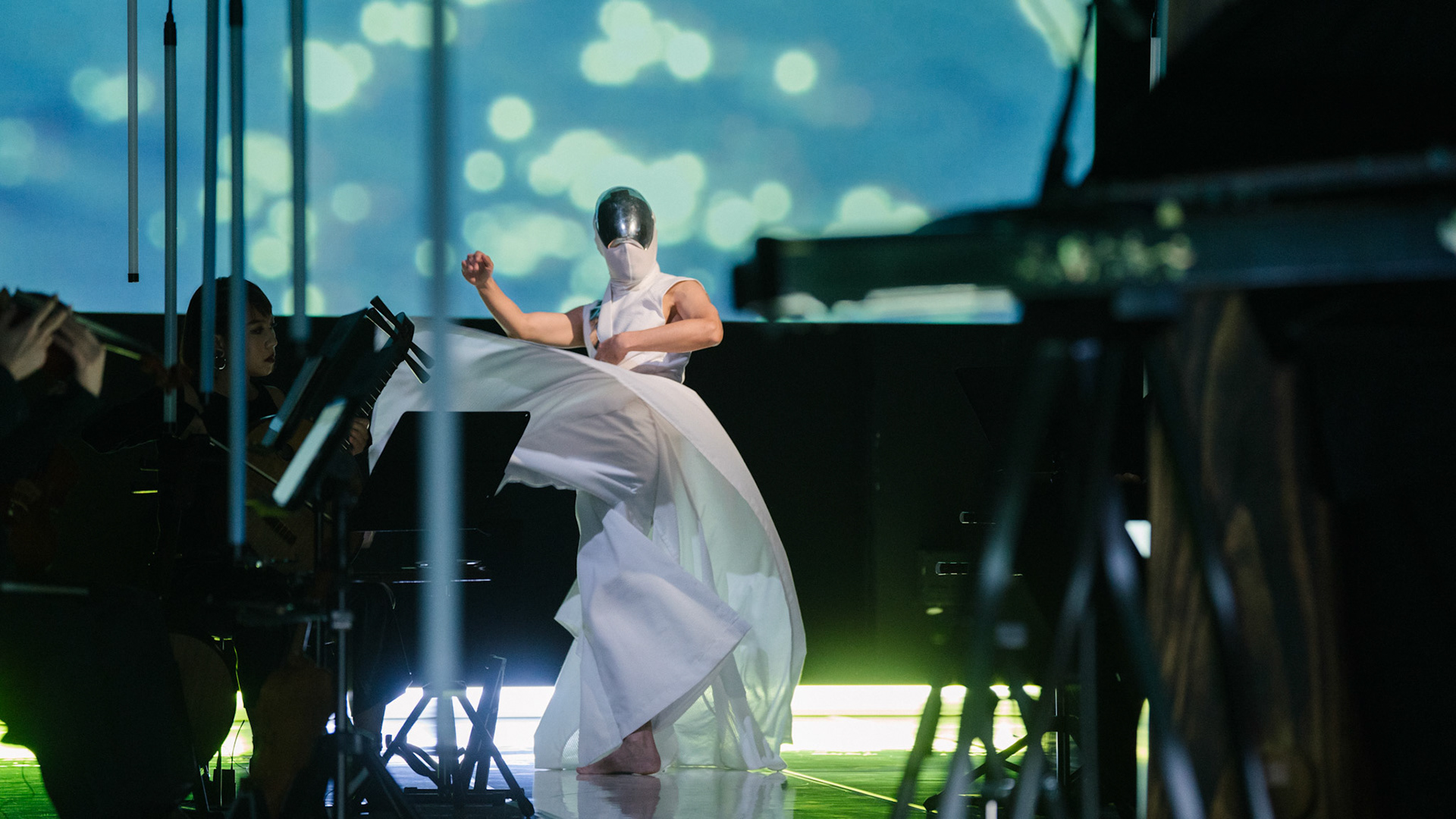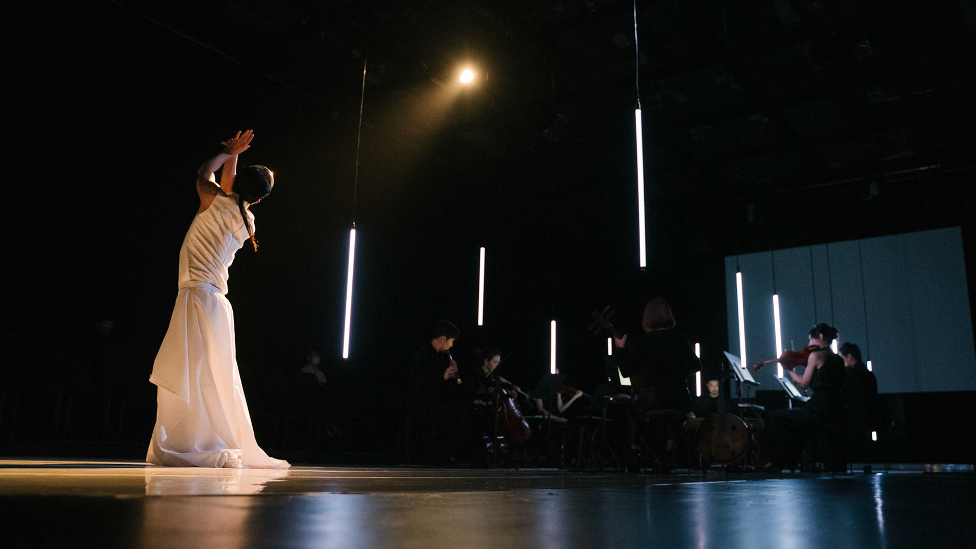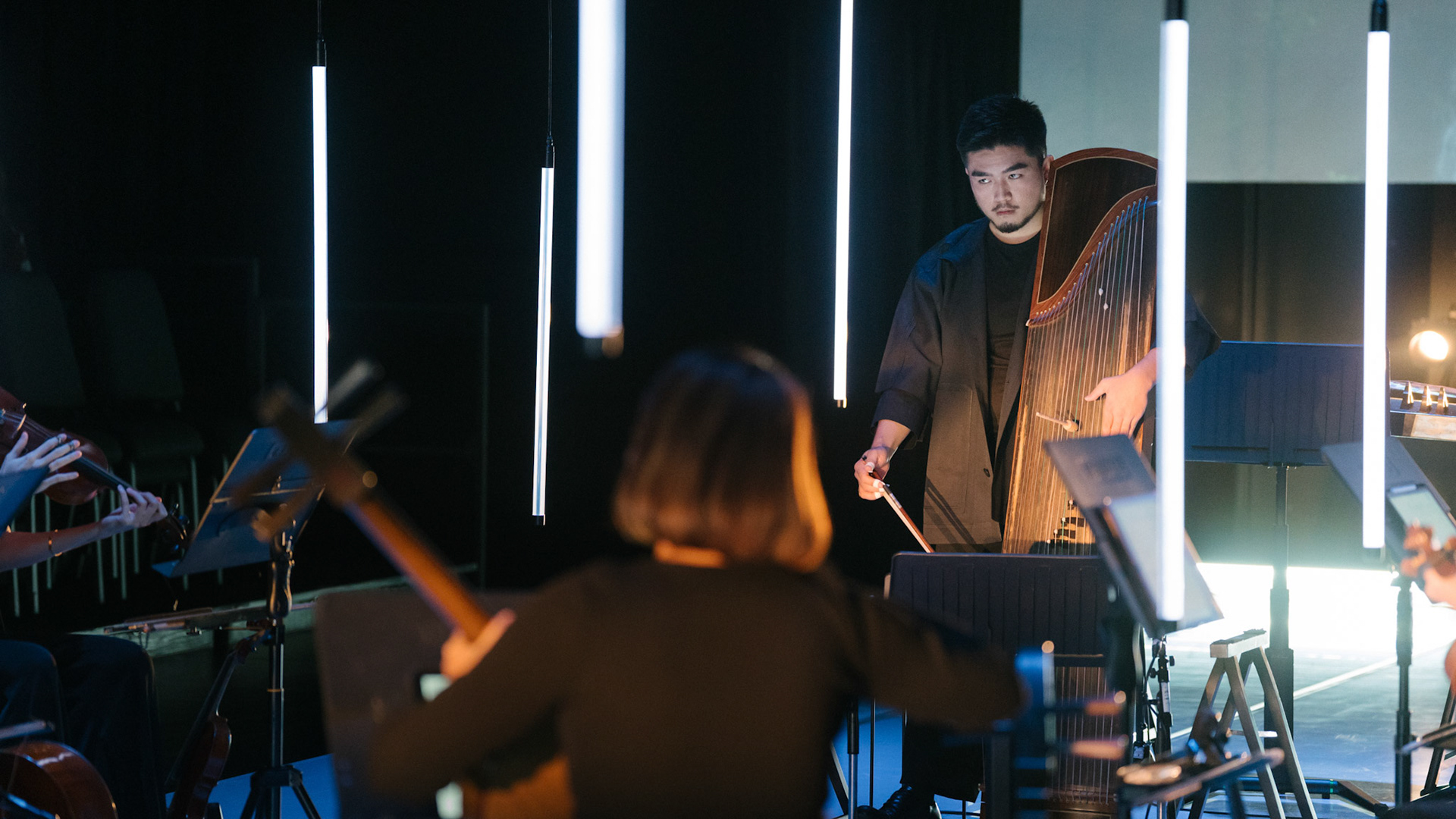 主創團隊|三個人 古箏/郭靖沐、笛簫/任重、阮/潘宜彤 弦樂四重奏|小提琴/張家倫、曾敏青、中提琴/江婉婷、大提琴/張智惠 作曲|呂佾庭《瓶中花》、林煒傑《众・㠭》、黃苓瑄《催化》 合作視覺藝術家|李浩 合作舞蹈藝術家|林春輝(小得) 舞臺設計|謝均安 燈光設計|簡芳瑜 服裝設計|林玉媛 舞台監督|張婷婷 音場設計|溫承翰 影像技術|田子平 製作人|蘇庭睿 執行製作|徐儷慈 劇照攝影|陳宥中