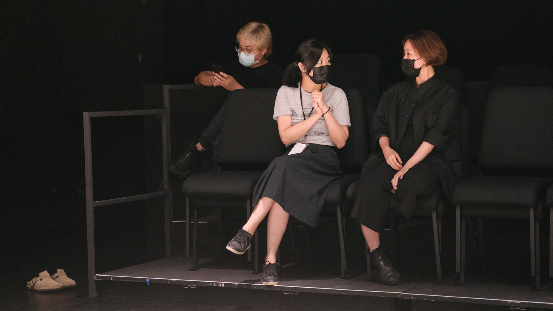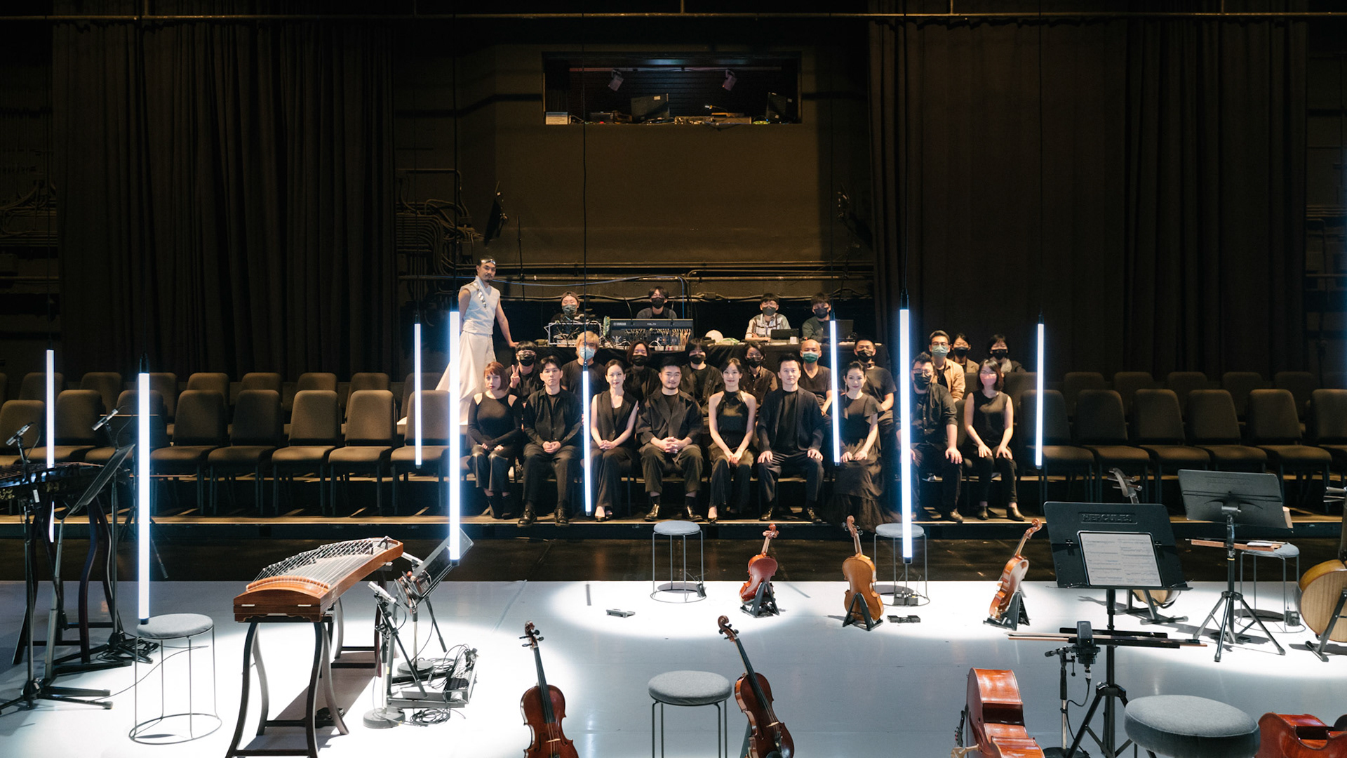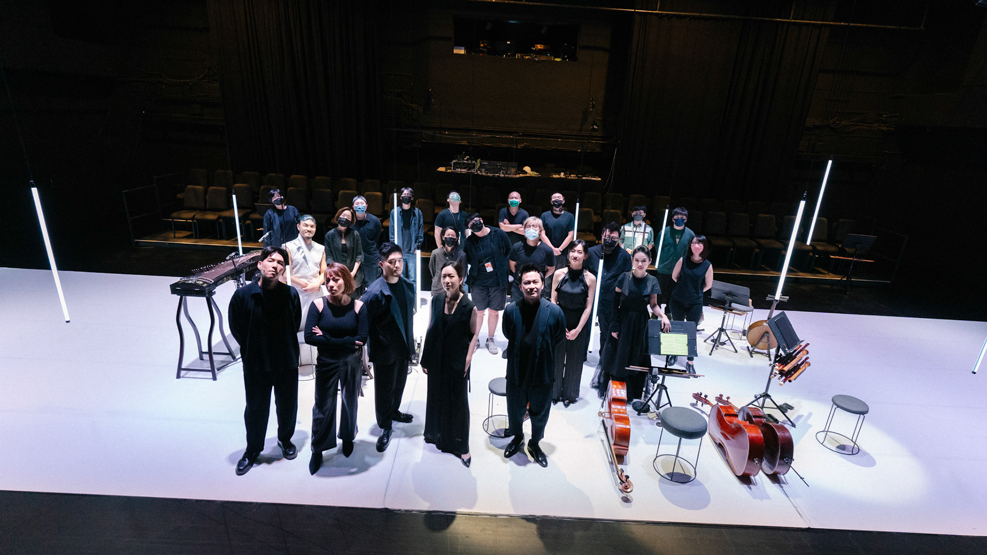 主創團隊|三個人 古箏/郭靖沐、笛簫/任重、阮/潘宜彤 弦樂四重奏|小提琴/張家倫、曾敏青、中提琴/江婉婷、大提琴/張智惠 作曲|呂佾庭《瓶中花》、林煒傑《众・㠭》、黃苓瑄《催化》 合作視覺藝術家|李浩 合作舞蹈藝術家|林春輝(小得) 舞臺設計|謝均安 燈光設計|簡芳瑜 服裝設計|林玉媛 舞台監督|張婷婷 音場設計|溫承翰 影像技術|田子平 製作人|蘇庭睿 執行製作|徐儷慈 劇照攝影|陳宥中