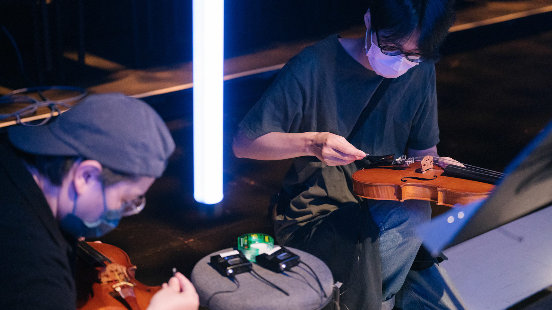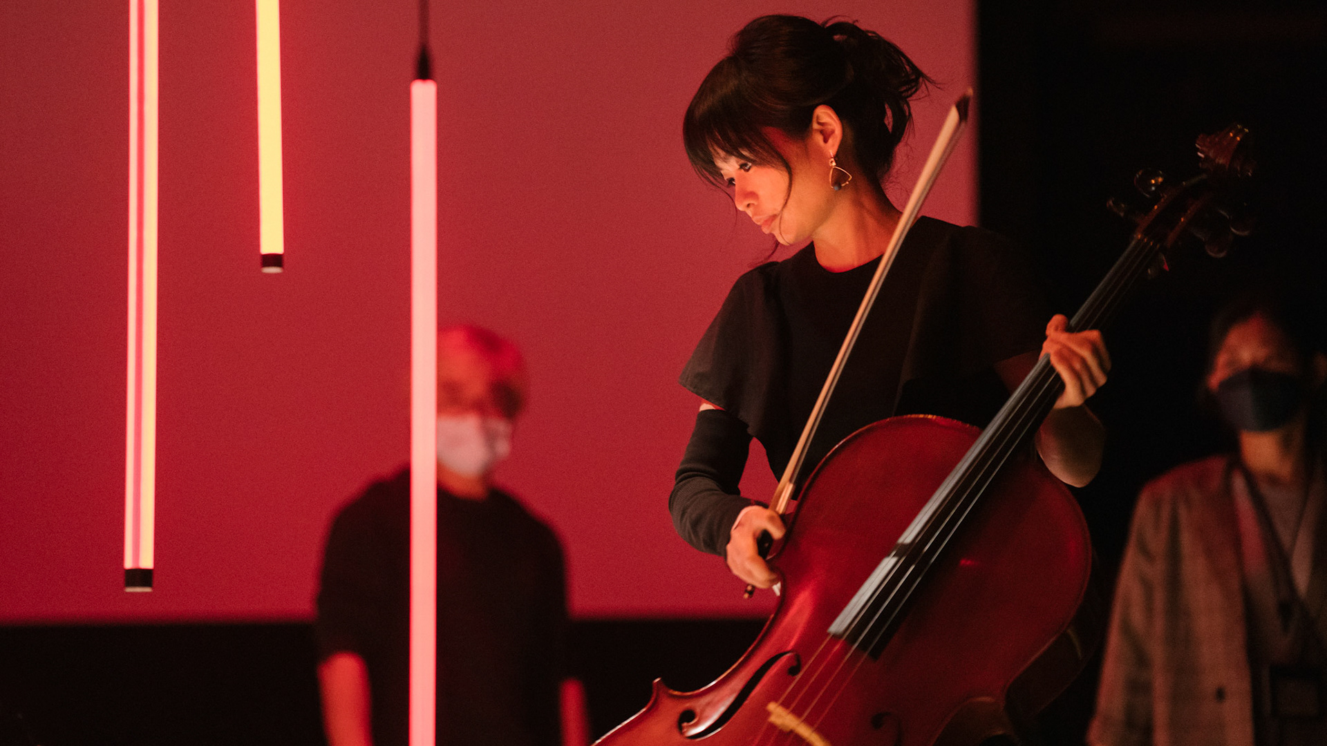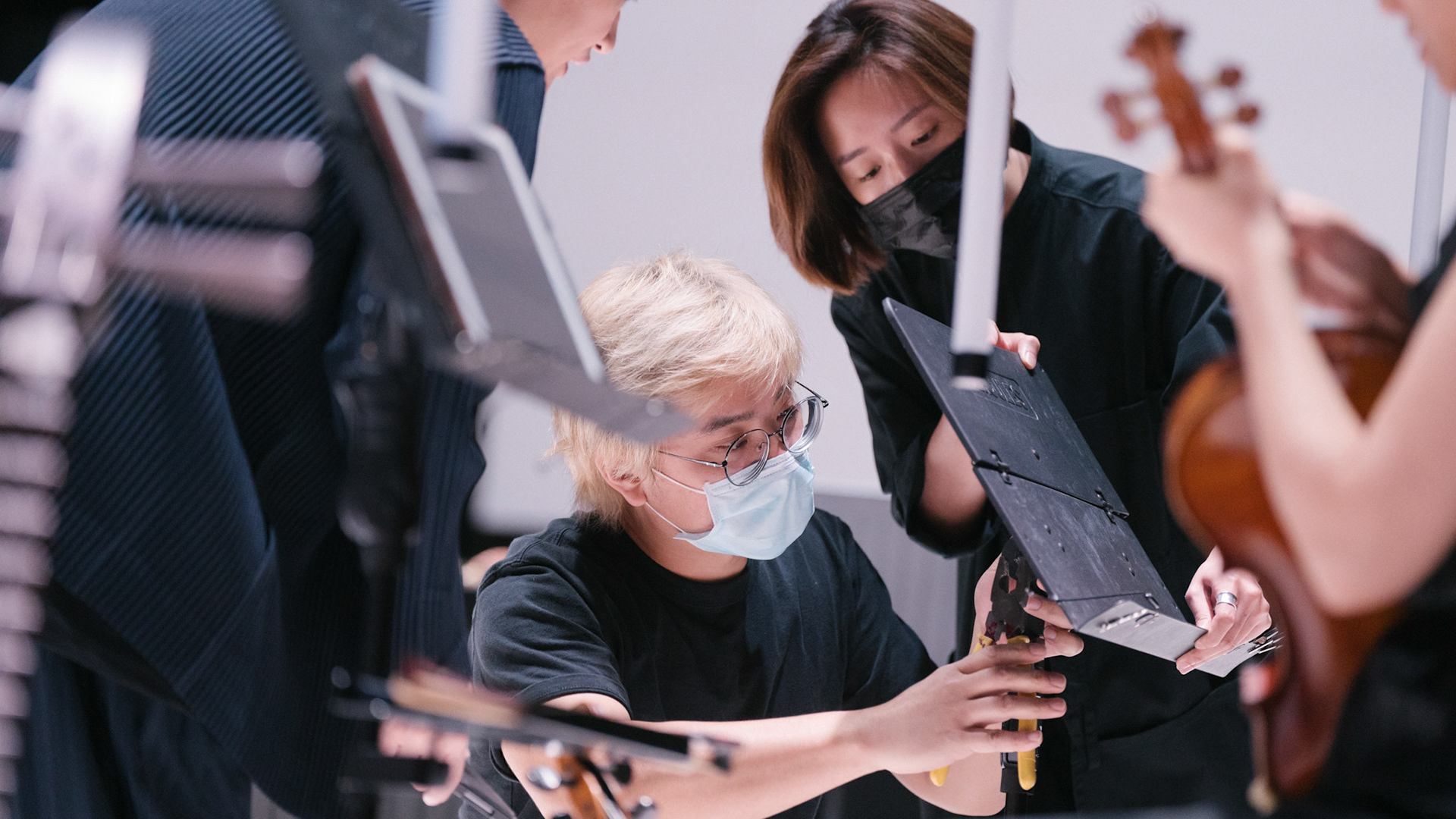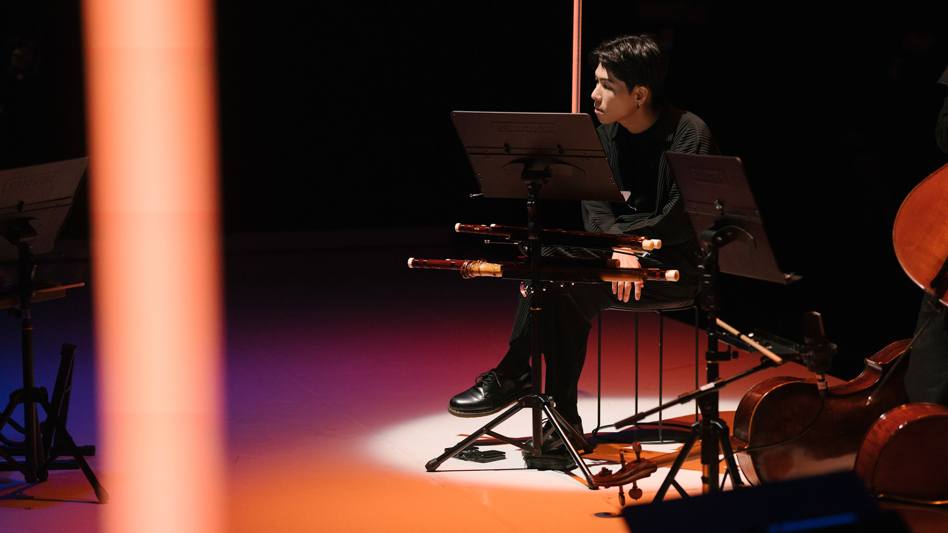 主創團隊|三個人 古箏/郭靖沐、笛簫/任重、阮/潘宜彤 弦樂四重奏|小提琴/張家倫、曾敏青、中提琴/江婉婷、大提琴/張智惠 作曲|呂佾庭《瓶中花》、林煒傑《众・㠭》、黃苓瑄《催化》 合作視覺藝術家|李浩 合作舞蹈藝術家|林春輝(小得) 舞臺設計|謝均安 燈光設計|簡芳瑜 服裝設計|林玉媛 舞台監督|張婷婷 音場設計|溫承翰 影像技術|田子平 製作人|蘇庭睿 執行製作|徐儷慈 劇照攝影|陳宥中